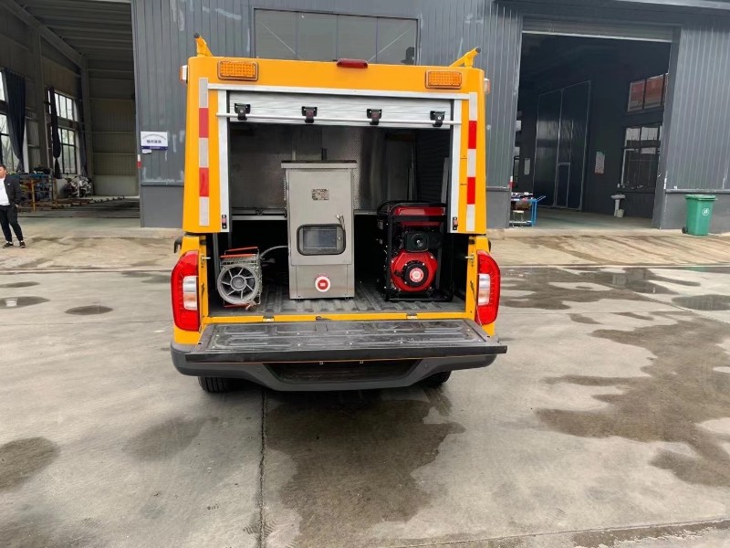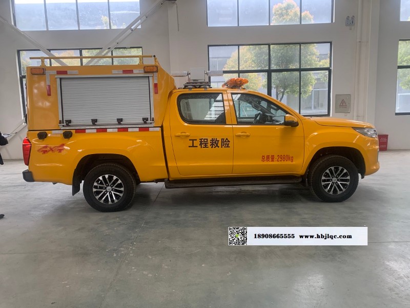 其它 | 该车配备有专用设备架、折叠升降照明灯、工程用标识灯、发电机、电焊机、车载吊机、线缆盘等专用设备, ,配备市电接口, 可用于重大事故的应急抢险救援2.该车可选装升降照明系统、车厢顶部护栏、摄像头、频闪灯。选装厢体外观,货厢侧翼可选装卷帘门、开启门、封闭式样式;后部可选装卷帘门、开启门;顶部仅安装工程标示灯、顶部护栏、升降照明系统带摄像头高度为2270mm;顶部仅安装护栏、工程标识灯高度为2150mm;顶部仅安装工程标示灯、升降照明系统无摄像头高度为2110mm;顶部仅安装工程用标识灯高度为2030mm; 3.随原车选装前格栅,轮辋,不带前雾灯,不带昼间行车灯,不带侧踏板; 4.整备质量2655kg对应总质量2980kg,整备质量2110kg对应总质量2435kg;5. 发动机净功率为119kW,该车可装ABS或ESP.ABS型号/生产企业:ABS9/博世汽车部件(苏州)有限公司.ESP型号/生产企业:ESP9/博世汽车部件(苏州)有限公司; | ||