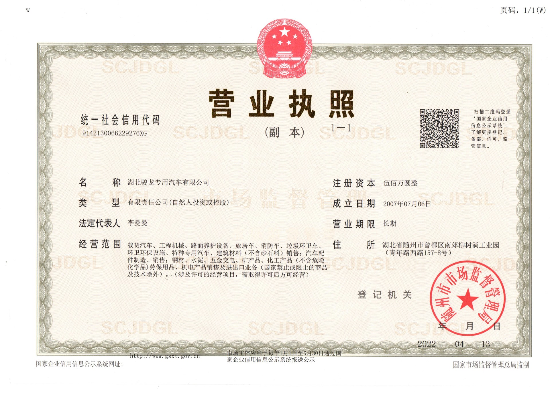 湖北骏龙专用汽车有限公司